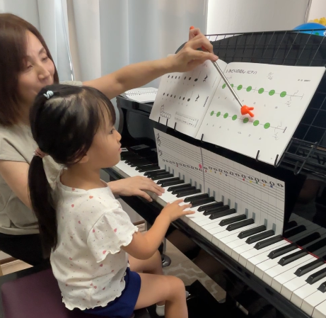 年少さん☺️今月から知育プレピアノから子どもピアノコースへ🎹とても楽しみにしていたみたいです😄知育プレピアノでしっかり土台を作ってからの移行なのでとてもスムーズです。指も1本ずつ動いてますね☺️楽譜を見る目は真剣です👀✨