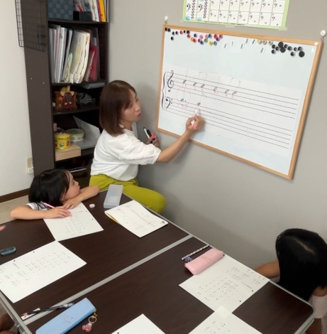 🔹小学生希望者によるグループレッスン4回目〜〜少しずつの積み重ね〜〜・音符読み・リズム音列や目印の音、リズム♩🎵細分化して伝えると『なるほど』と理解できるようになります。グループの良いところ☺️ ↓ ↓合わせることができる!分担できる!リズム練習がバッチリそろった時、とても気持ち良かったです✨✨これは生徒さんも感じたことだと思います。最後に『音符カードdeトランプ』みんなで目印の音を基本に音列を完成させました‼️楽譜の仕組みが見えて来たかな😉